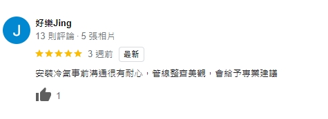 客戶好評-Jing先生 | 台南冷氣安裝 | 南區冷氣安裝